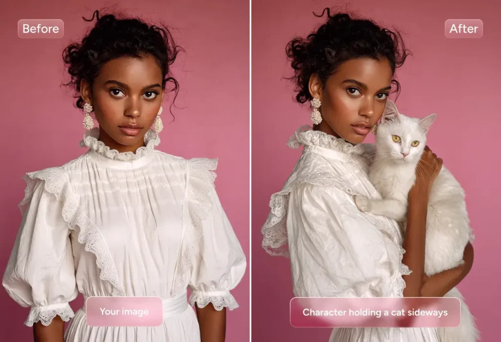 Vous importez une photo existante. Puis vous dialoguez avec le modèle pour la transformer progressivement. « Remplace l’arrière-plan par une forêt d’automne. » « Ajoute un chapeau rouge au personnage. » « Rends l’atmosphère plus chaleureuse. »