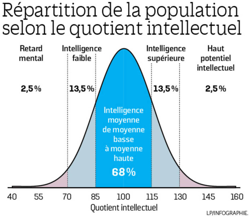 • QI 130+ : environ 2% de la population (haut potentiel intellectuel)